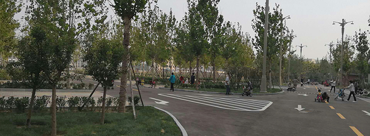 教育科研區域林蔭停車場工程總面積約17668平方米,綠化部分約8300平方米;計劃建設車位約200個;小型景觀公廁一座,建筑面積約為120平方米。