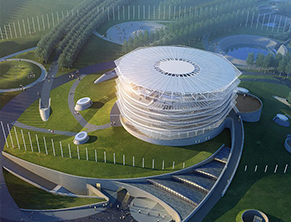 日照市科技館該項(xiàng)目西鄰青島路、東臨綠舟路、南鄰日照植物園,建筑高度34米,建筑面積1.8萬平方米,概算投資2億元。科技館設(shè)計(jì)中引入"黑洞"和"星空"的概念,作為"黑洞"的中心,所有的場地景觀及道路都圍繞這個中心沿螺旋狀放射形布置,暗示了整個場地的"力的源泉"都來自于科技館。